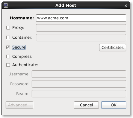 In the PCP strip chart utility pmchart from version 1.5.7 onward, secure connections can be established using the "Add Host" dialog. This can be accessed via the "New Chart" or "Open View" menu entries.