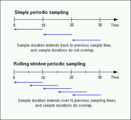 The primary advantage of the rolling window approach is that at the point where data is actually exported, the data which is exported has a higher probability of reflecting a more recent sampling period than the data exported using simple periodic sampling.